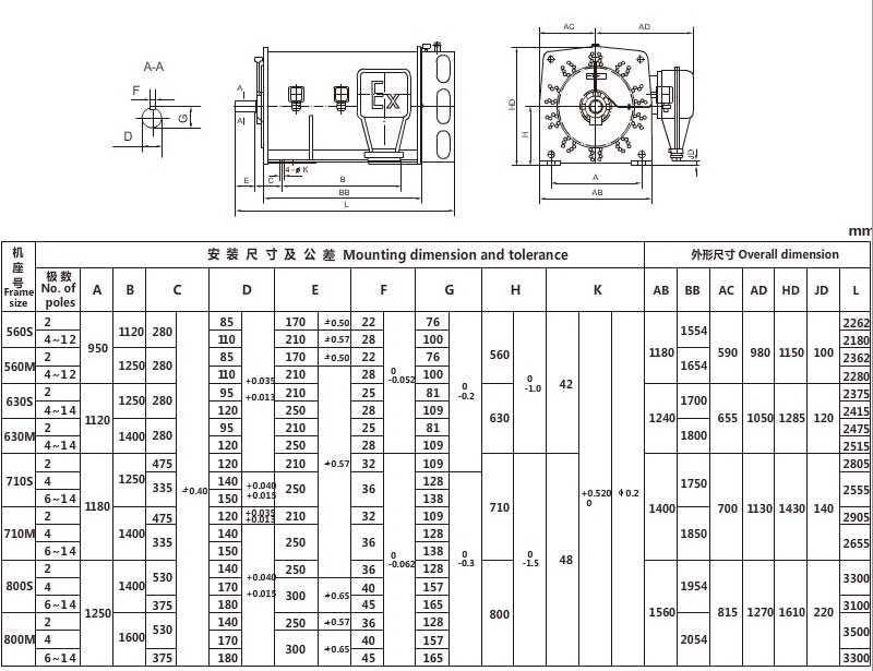 轴中心高:560、630、710、800mm